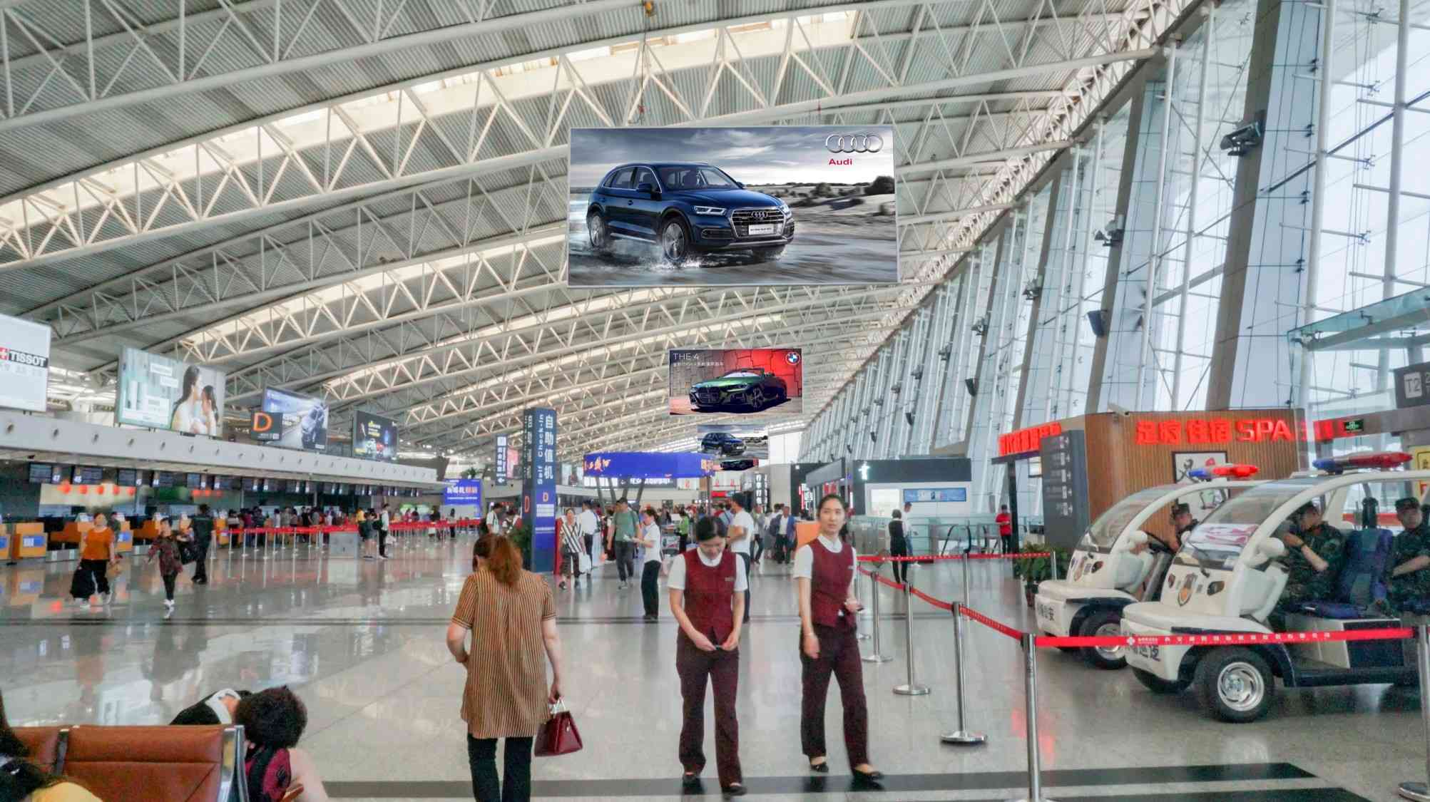 西安咸陽機場廣告,咸陽機場T2航站樓國內(nèi)出發(fā)懸掛燈箱廣告