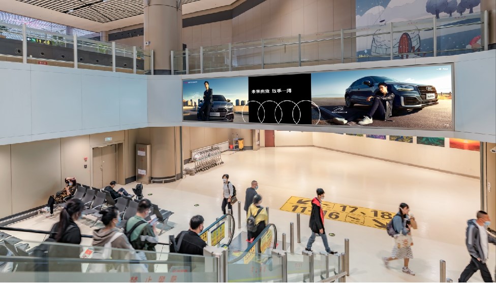廣告位置:T2航站樓遠(yuǎn)機(jī)位下電梯正迎面及 出發(fā)通廊正迎面