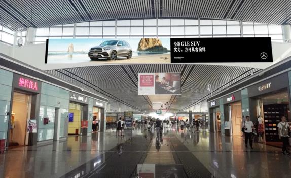 天津濱海機場廣告- 天津濱海機場T2國內(nèi)安檢口正上方led廣告