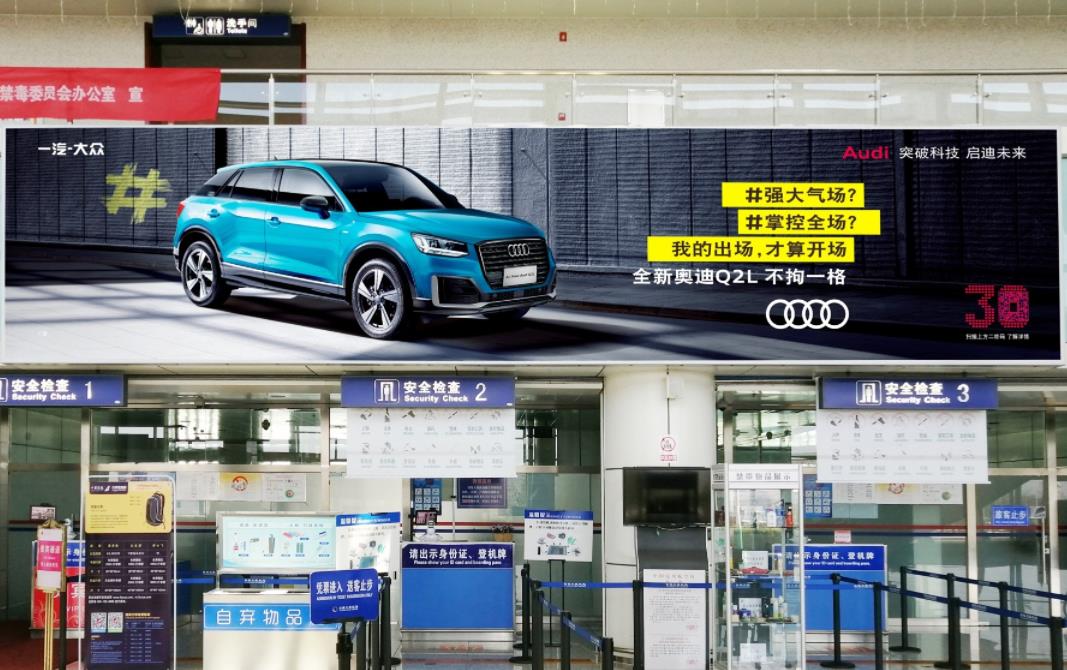 呂梁大武機(jī)場(chǎng)T1航站樓安檢口上方led大屏廣告,萬(wàn)事成傳媒