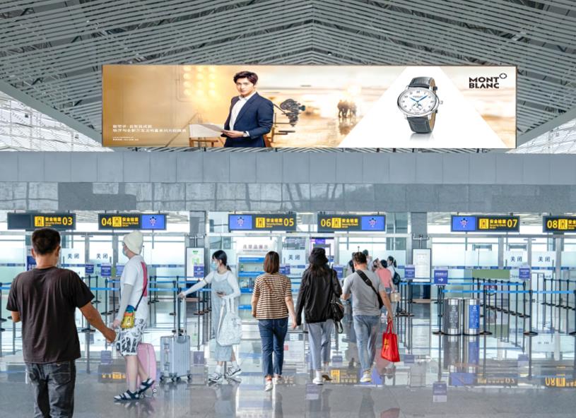 張家界荷花機(jī)場(chǎng)出發(fā)大廳安檢上方led大屏廣告