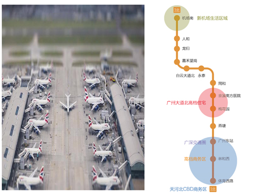 3北線 ——機場快線:3北線南起體育西路站,往北直達(dá)廣州新白云國際機場??土髫灤┯趶V州高端商務(wù)區(qū)(天河北),廣州大道北(廣州北部樓盤密集區(qū)),花都新區(qū),以及新白云國際機場之間,匯聚廣州最高端的地鐵客流。3北線是乘客往返市區(qū)與機場之間的首選交通工具。
