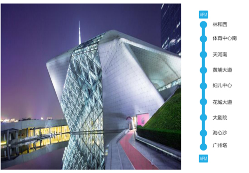 APM線 ——城市中軸觀光線:APM線為全地下、全封閉、無人駕駛的短線客運系統(tǒng),承擔(dān)珠江新城核心區(qū)的交通疏導(dǎo)功能。線路整體呈南北走向,總長約3.94公里,沿途串起廣州塔、海心沙、珠江新城與天河商貿(mào)區(qū),實現(xiàn)林和西至廣州塔之間的短距離軌道快速通行。其中,黃埔大道至歌劇院站更是與廣州新中軸的花城廣場地下建筑連通,形成與地面各大商貿(mào)建筑的無縫鏈接。