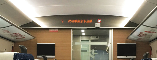 位于所有高鐵車廂內(nèi)行李架下方,對稱發(fā)布,氣勢磅礴,視覺沖擊力強(qiáng),無論坐、立、行,都能有絕佳的視覺效果,利于品牌整體性展示。