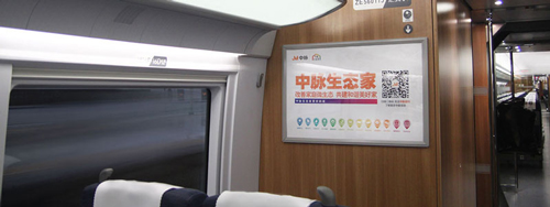 海報(bào):位于所有高鐵車廂內(nèi)進(jìn)門處等顯要位置,覆蓋全部高鐵旅客。