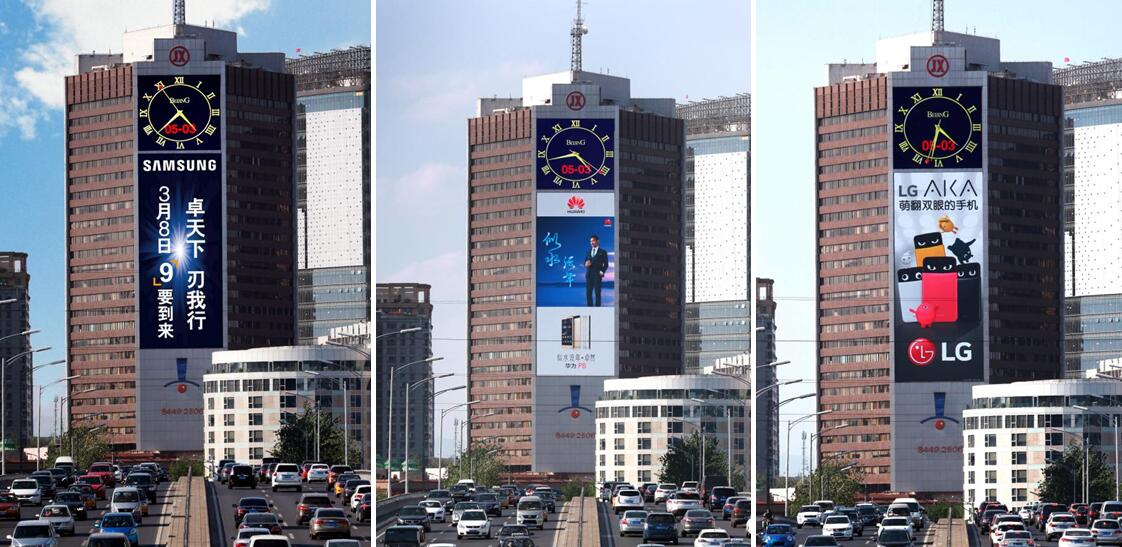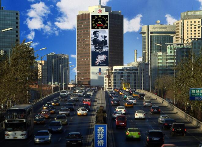 而如果從東三環(huán)去往首都機(jī)場(chǎng),則更是必定長時(shí)間注意到該LED屏。對(duì)于來京、出京從事商務(wù)活動(dòng)的人士來說,巨大的、占據(jù)了整個(gè)樓體的該LED屏,極佳的亮度和觀看視野,都注定會(huì)長時(shí)間留在人們的印象中,成為他們關(guān)于北京的城市記憶中重要的印跡。