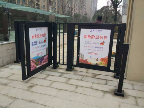 其社區(qū)門禁廣告主要用于社區(qū)出入大門口、商業(yè)區(qū)出入大門口等一起需要控制人流出入的場所,因其在傳統(tǒng)的鐵藝門上增加了獨特廣告燈箱,其夜間獨特的燈光效果。