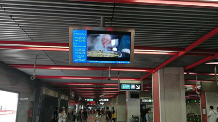 北京地鐵通道LCD電視-進出站及換乘必經(jīng)之路,唯一動態(tài)內容吸引乘客關注。