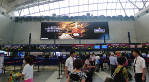 廣告位置:T2航站樓國內(nèi)、國際到達(dá)出口上方 廣告編號(hào):BJ-LED-1、BJ-LED-2