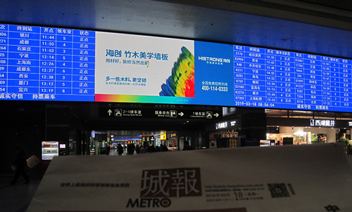 媒體優(yōu)勢(shì):該媒體位于一樓候車大廳LED車次顯示屏兩側(cè),媒體位置極佳,是所有進(jìn)站乘車候車旅客的必看媒體,廣告的強(qiáng)制接受性高,旅客停留時(shí)間較長,廣告內(nèi)容記憶深刻,廣告到達(dá)率高。