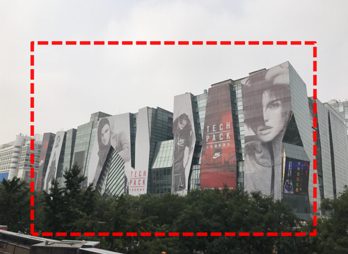 創(chuàng)意方案三:整面(朝東);廣告總面積: 2800m²(圖片為改造前的實(shí)景照片) 發(fā)布費(fèi)用:(7天:460萬(wàn)) 制作費(fèi)有+上下刊費(fèi)用:84萬(wàn)