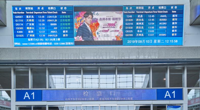 成都東站廣告,成都東站led屏廣告,高鐵站廣告投放,萬事成傳媒