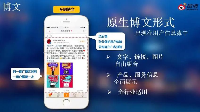 開通微博的后臺(tái)管理廣告投推廣帳戶,也是直接開啟微博粉絲通,這樣就可以將廣告以原生態(tài)視頻的推送到微博客戶微博信息流廣告頁面上,并利用大數(shù)據(jù)技術(shù),直接把廣告推送到對(duì)產(chǎn)品質(zhì)量有興趣的客戶群體中。