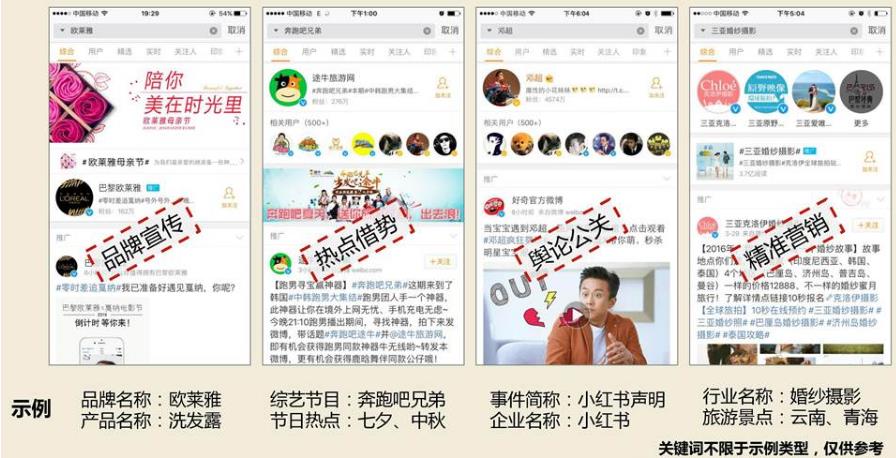 優(yōu)勢(shì):發(fā)現(xiàn)頁面的默認(rèn)搜索詞匯,現(xiàn)在有越來越多的人上微博只為了看熱門內(nèi)容,比較容易引起用戶的興趣,不會(huì)搜索框內(nèi)其實(shí)是廣告,不容易引發(fā)用戶的反感,畢竟好多平臺(tái)搜索框內(nèi)都有文字提示。