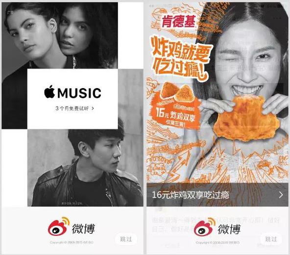 (1)開屏廣告。開屏廣告在很多的APP之中,都會有此類的廣告形式展現(xiàn),在打開APP之后會出現(xiàn)一個(gè)全屏的廣告,點(diǎn)擊廣告之后,會出現(xiàn)跳轉(zhuǎn)等一系列活動。開屏廣告具有一定的的針對性,能夠確定相關(guān)的目標(biāo)受眾,同時(shí)具有強(qiáng)制曝光,讓每一個(gè)打開微博的受眾,都能夠必須看到整個(gè)廣告,才能進(jìn)入界面。
