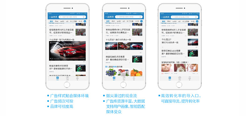 目前安裝超2億注冊用戶,月活躍用戶,超6500萬,日ADU超2400萬,每人每天日均使用時長超43分鐘,一點資訊整合鳳凰,小米硬件等資源,精準(zhǔn)營銷,實現(xiàn)品效合一。
