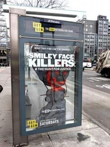 現(xiàn)在已經(jīng)有很多案例表明不斷地有公司在研究更具體驗(yàn)感、創(chuàng)造性的戶(hù)外廣告,比如在公交車(chē)候車(chē)亭創(chuàng)造出更為復(fù)雜的表現(xiàn)形式。就像下面這個(gè)候車(chē)亭廣告,為了宣傳驚悚電影《笑臉殺手(The Smiley Face Killers)》,采用透明的裝飾柜效果打造出一幅謀殺泰迪熊的場(chǎng)景,讓人汗毛豎立的同時(shí),又忍不住想多看幾眼。