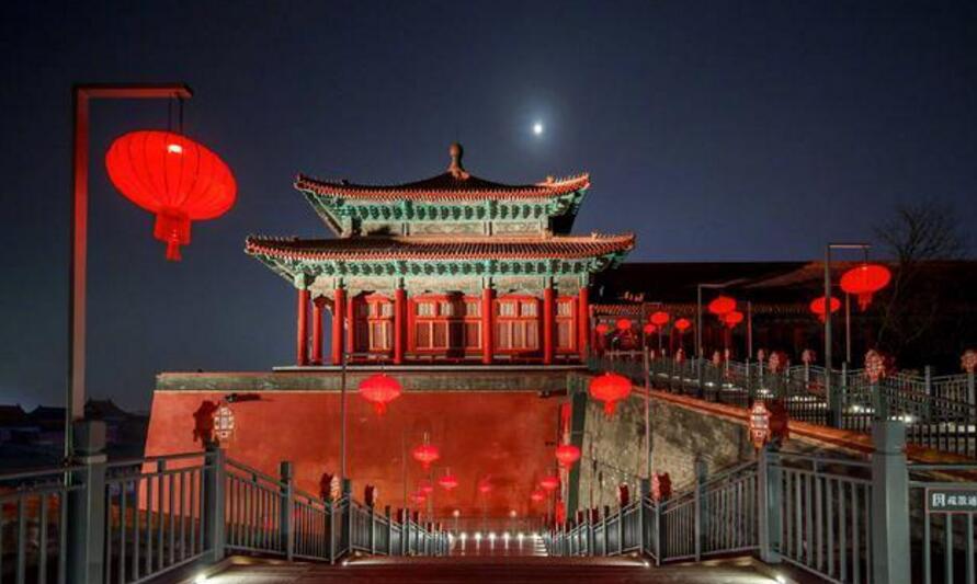 沿著城墻步行至東南角樓,近千米長(zhǎng)布滿紅燈籠的故宮東城墻便出現(xiàn)在眼前,東城墻左邊是靜謐的紫禁城內(nèi)城,右邊則是北池子大街和遠(yuǎn)處的王府井等現(xiàn)代建筑。而盡頭處的角樓被各種紅襯得尤為喜慶,自成一幅美妙的畫卷。
