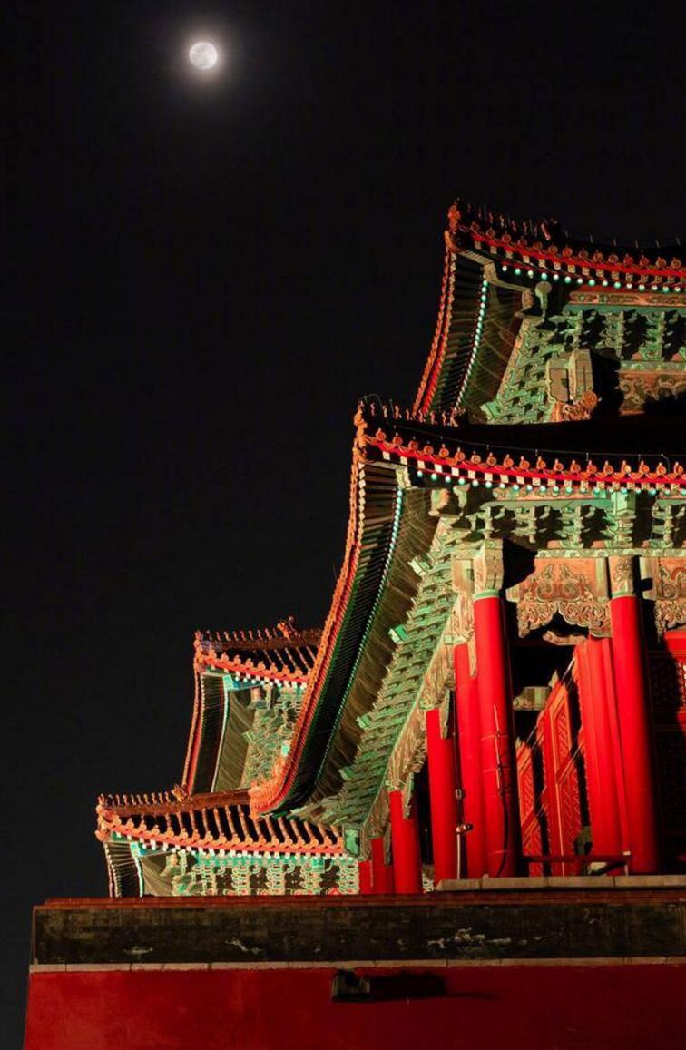 比起午門的瑰麗,太和門廣場(chǎng)顯得較為古樸。重檐之上的月光,城墻下延綿的彩燈,似乎將四周的宮殿剛剛喚醒,斑駁與浮華交織,偶有御貓從屋脊輕盈地掠過(guò)。