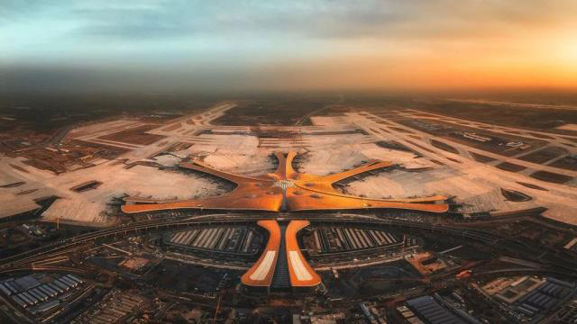 大興機(jī)場計劃于2019年九月開放運營。它有四條跑道,以及一個相當(dāng)于97個足球場大的航站大樓。
