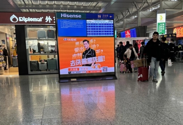 洗臉熊自創(chuàng)立開始,一直專注于面部清潔護(hù)理領(lǐng)域,致力為消費(fèi)者提供輕松、簡(jiǎn)約、高品質(zhì)的洗臉?lè)?wù),在輕美容細(xì)分賽道上不斷開拓市場(chǎng),全國(guó)合作門店數(shù)量持續(xù)上漲,為助力合作門店精準(zhǔn)投流,自2023年以來(lái),洗臉熊采取了系列品牌戰(zhàn)略合作,品牌廣告先后亮相廣州地鐵、華夏航空、分眾電梯和停車閘機(jī)等焦點(diǎn)公共區(qū)域,利用這些戶外媒體受眾廣、強(qiáng)曝光的特點(diǎn)不斷深化品牌印象。此次亮相四大一線城市高鐵站內(nèi)LED屏幕,是面向商旅人群的又一次“品牌種草”,深入到高鐵站內(nèi)進(jìn)站口、出站口、檢票口、候車大廳等各大客流要塞,共計(jì)264塊大屏投放,多屏共振形成傳播閉環(huán),實(shí)現(xiàn)高密度、高頻次曝光,精準(zhǔn)覆蓋和廣度傳播,筑造強(qiáng)勢(shì)品牌沖擊波,實(shí)現(xiàn)與億級(jí)旅客零距離互動(dòng),彰顯實(shí)力品牌大風(fēng)范!