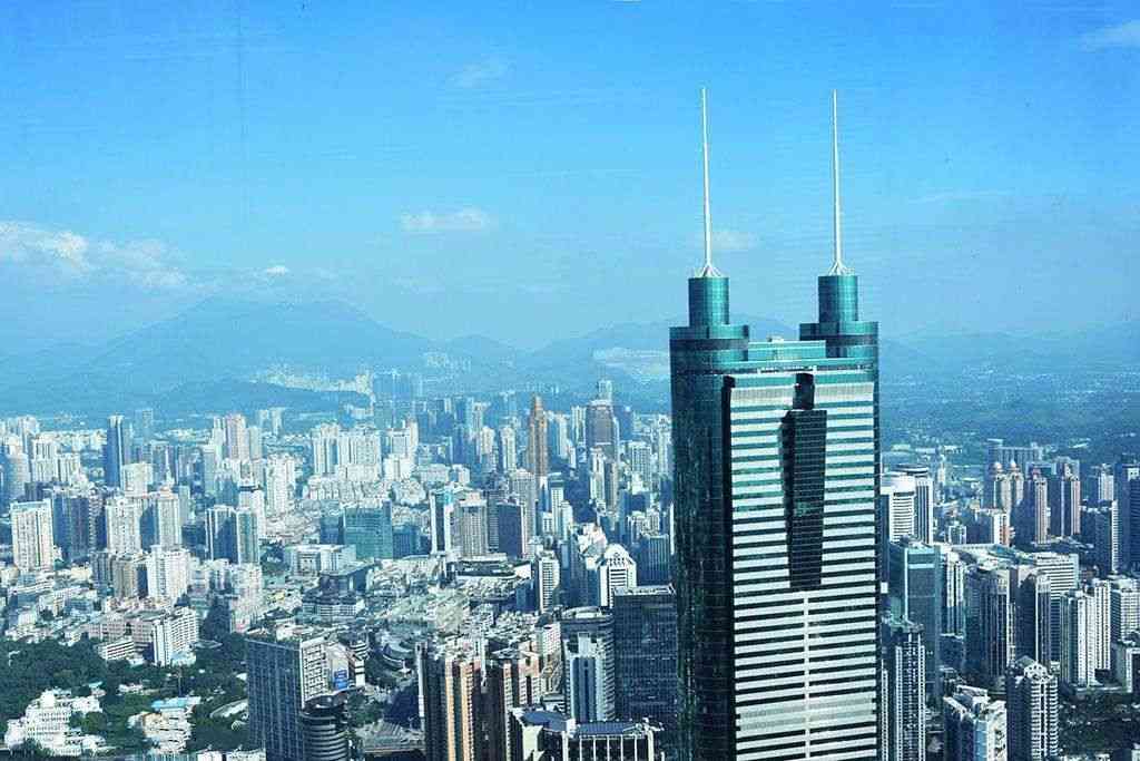 地王大廈,正式名稱(chēng)為信興廣場(chǎng)。建成時(shí)曾是亞洲第一高樓,也是全國(guó)第一個(gè)鋼結(jié)構(gòu)高層建筑。主題性觀(guān)光項(xiàng)目“深港之窗”,就坐落在巍峨挺拔的地王大廈頂層,是亞洲第一個(gè)高層主題性觀(guān)光游覽項(xiàng)目。在此可以俯覽深圳市容,遠(yuǎn)眺香港市容。