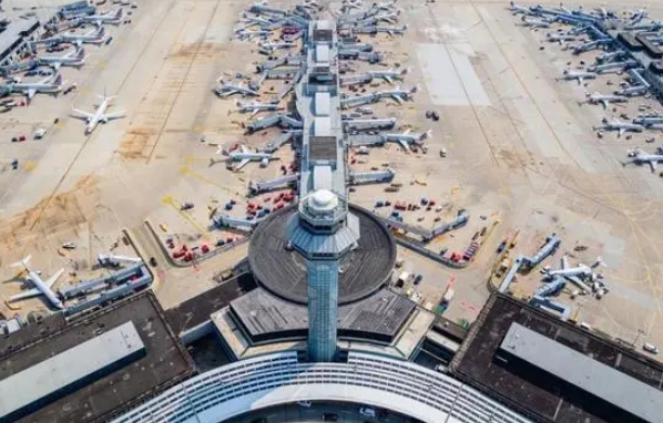 美國芝加哥奧黑爾國際機(jī)場,是世界上目前最大的飛機(jī)場之一,擁有多條跑道和一個龐大的候機(jī)樓,是美國聯(lián)合航空公司等主要航空公司的基地之一。