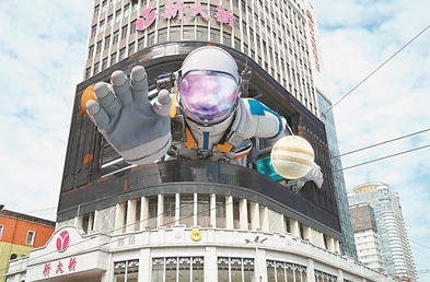 位于廣州北京路新大新大廈的國內(nèi)首塊1200平方米8K裸眼3D戶外大屏