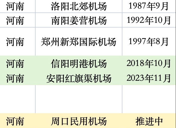 經(jīng)濟(jì)大省、同樣也是人口大省的河南,機(jī)場(chǎng)數(shù)量在全國(guó)靠后。